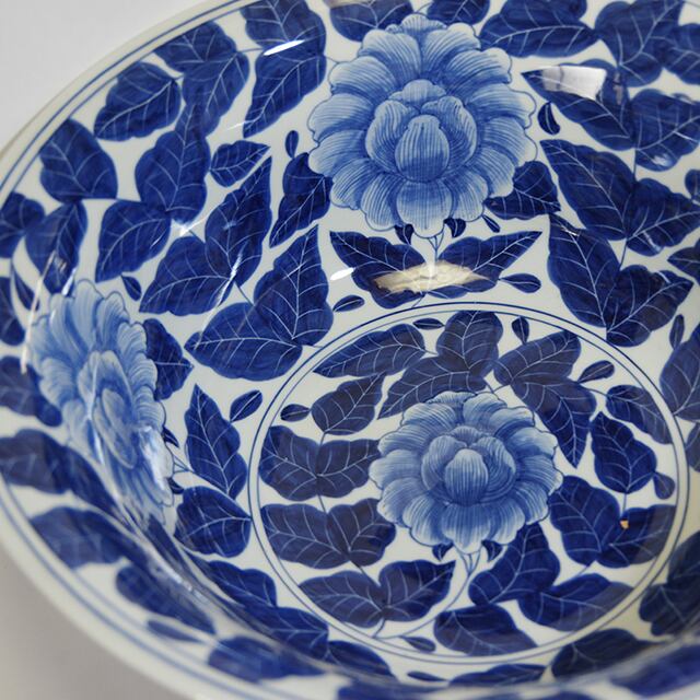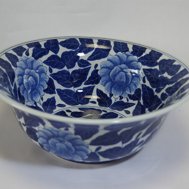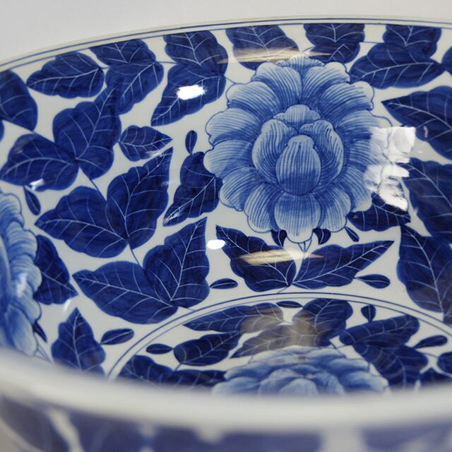 美しい手書きの牡丹の花が映える大鉢 有田焼